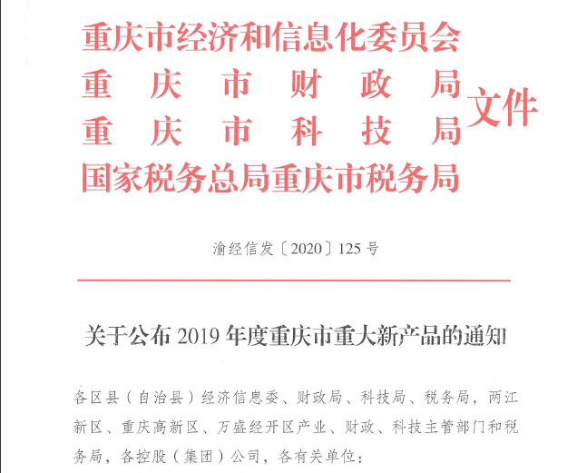 賽迪裝備首次獲得重慶市重大新產(chǎn)品認(rèn)定