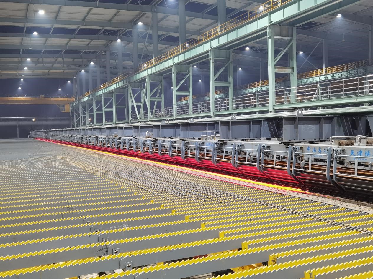 此項目于2020年1月簽訂,含2條年產能140萬噸的雙高棒生產線,設計總產能為280萬噸,產品規格為F12~F22mm螺紋鋼。該兩條生產線的機電液成套設備均由賽迪裝備供貨,配置了賽迪裝備NHCD系列短應力線軋機、CDMC系列高速模塊軋機及FSCD系列飛剪等長材核心裝備產品,并采用超高速的上鋼系統等,在中冶賽迪自主設計、制造和集成的核心工藝及控制技術的支撐下,此項目成為當前最先進的全國產化雙高棒生產線的標桿。