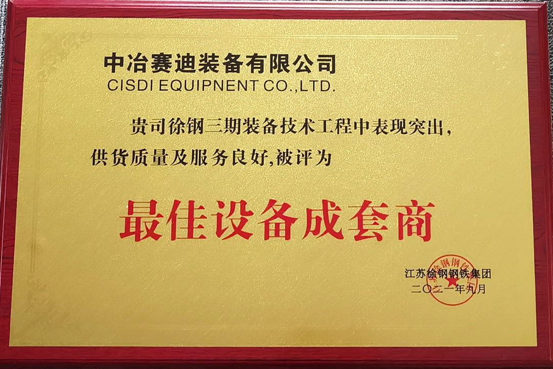 2021年9月,賽迪裝備在徐鋼三期裝備技改工程中表現(xiàn)突出,供貨質(zhì)量及服務(wù)良好,被江蘇徐鋼鋼鐵集團(tuán)評(píng)為“最佳設(shè)備成套商”。